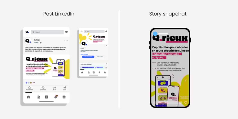 Après avoir étudié ce programme, et avoir interrogé des élèves et des professeurs, nous avons imaginé l'application Q.rieux, une application éducative pour les professeurs et les lycéens de 15 à 18 ans, avec des ressources, des quiz, des vidéos et des contenus interactifs.